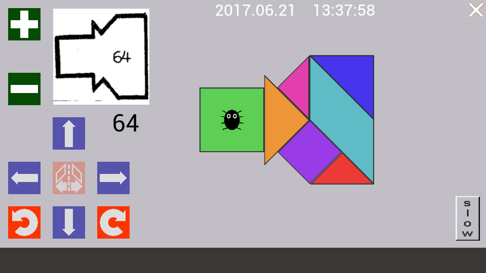 Puzzle game where you make shapes using the individual elements. All items must be involved. In this game used images of figures scanned from the original game instruction from the USSR of the 80's.
