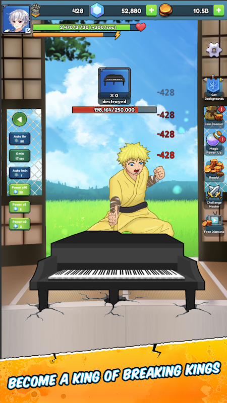 हीरो युकीची और हाना तीन क्षेत्रों में सभी क्षेत्रों को जीतना चाहता है और नायक को द्वीपों में सब कुछ तोड़ना पड़ता है; असुका, नारा और हीयान। प्रत्येक मास्टर ने अपनी चुनौती के लिए तोड़ने के लिए आइटम तैयार किए हैं। यदि आप एक राजा बनना चाहते हैं, तो आपको इस आकस्मिक क्लिकर सिमुलेशन में अपने दोहन कौशल में महारत हासिल करने की आवश्यकता है!
