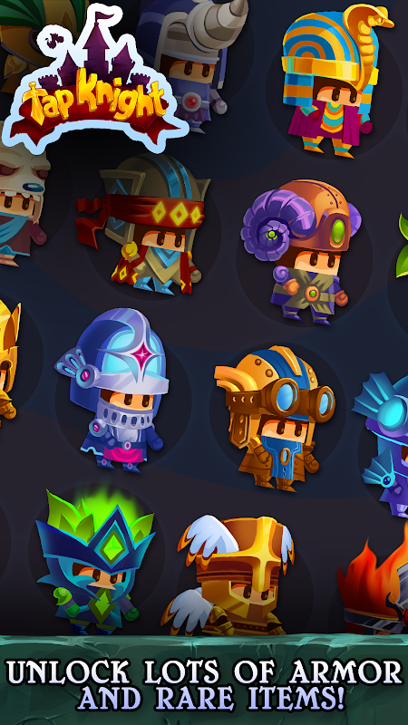 Tap Knight is an 'RPG clicker' game where the player slays monsters and gains experience to become powerful enough to free The Kingdom from evil Dark Mages. In this adventure there are many obstacles on the way, but also, there are lots of things to discover! Swords, chests, potions, artifacts, armor and trophies are waiting for their true hero to be unlocked!