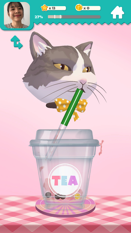 - Tapioca.ai चरित्र के आंदोलन को नियंत्रित करने के लिए फ्रंट कैमरे के माध्यम से अपने चेहरे के आंदोलन का पता लगा सकते हैं, जिसमें शामिल हैं: टैपिओका का पता लगाने के लिए माउस का पॉटिंग, सिक्का और सभी स्पार्कलिंग टैपिओका को वास्तविक बोबा पीने की तरह टपकाते हुए।