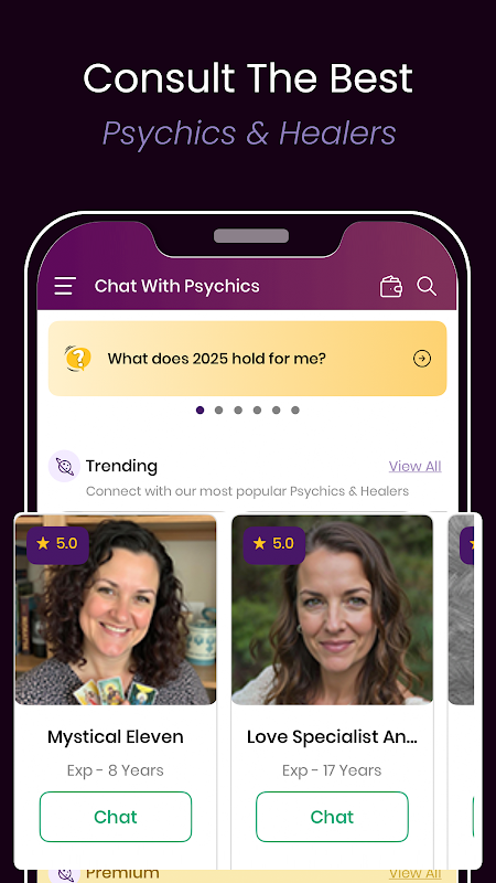 इस ऐप पर, आपको दुनिया भर के सर्वश्रेष्ठ टैरो रीडर, साइकिक और ज्योतिषी मिलेंगे, जो सटीक और सार्थक रीडिंग देने में सत्यापित और अनुभवी हैं। अपने प्रेम जीवन, करियर, वित्त और भविष्य के बारे में निजी, सटीक भविष्यवाणियाँ और मार्गदर्शन प्राप्त करने के लिए उनसे 24/7 चैट करें या कॉल करें।