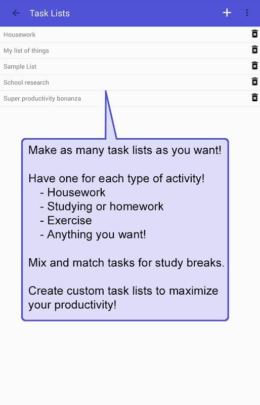 No limit to the number of lists, or number of tasks in each list! Simple and easy to use!