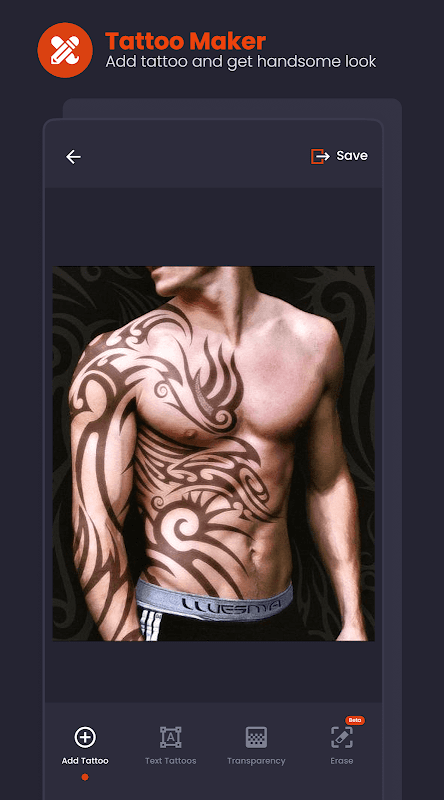 फोटो पर टैटू निर्माता टैटू आपको पेशेवर उपकरण प्रदान करता है जो आपको अपनी तस्वीरों पर टैटू बनाने में अपने अद्वितीय विचारों को लागू करने की अनुमति देता है जहां आप रंग बदल सकते हैं, पारदर्शिता को नियंत्रित कर सकते हैं और मेरे नाम के साथ टैटू मेरी तस्वीर जैसे टेक्स्ट जोड़ सकते हैं, अंततः एक अद्भुत तस्वीर प्राप्त कर सकते हैं आप दोस्तों के साथ साझा कर सकते हैं.
