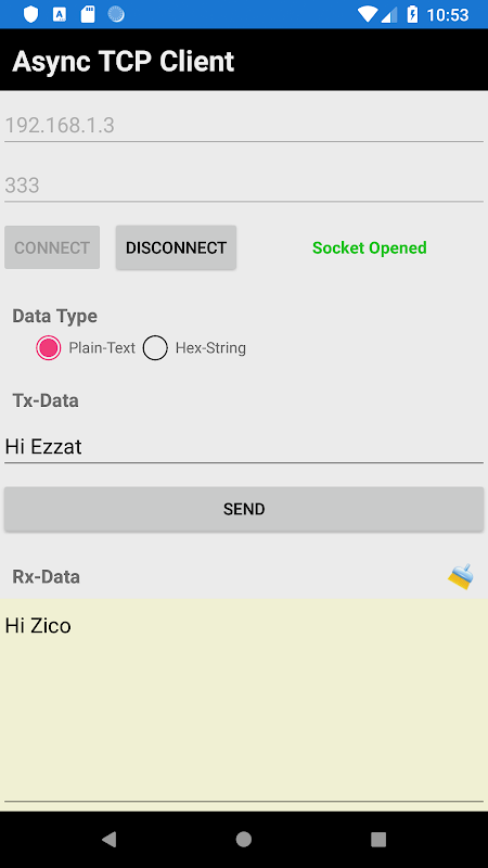 इस ऐप में Tx / Rx डेटा के दो मोड हैं: