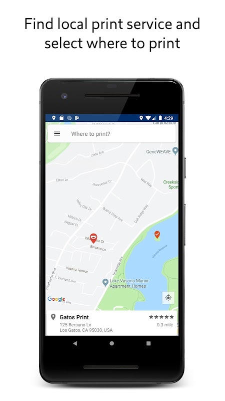 मानचित्र पर स्थानीय प्रिंट की दुकानों और सेवाओं का पता लगाएं। मुद्रित करने के लिए एक को चुनें। प्रिंट फ़ोटो, दस्तावेज़ और फ़ाइलें (अधिक सामग्री प्रकार जल्द ही आ रहे हैं) इंटरनेट के माध्यम से सीधे कुछ ही क्लिक के साथ आपके डिवाइस से।