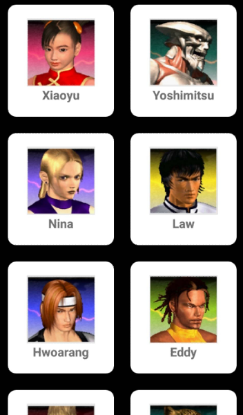 - Characters : Contains all characters movelist & costume.