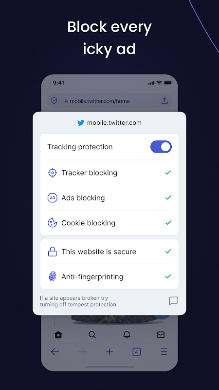 टेम्पेस्ट एक तेज़, सुरक्षित और निजी ब्राउज़र है जो आपके ऑनलाइन व्यक्तिगत डेटा को आपके नियंत्रण में रखता है। टेम्पेस्ट के साथ, जब आप इंटरनेट पर नेविगेट कर रहे होते हैं, तो आपको लक्षित विज्ञापनों द्वारा ट्रैक, प्रोफाइल, फ़िंगरप्रिंट या पीछा नहीं किया जाता है।