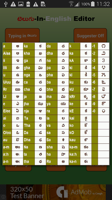 Tenglish - Telugu in English editor allows to to type Telugu words in English.