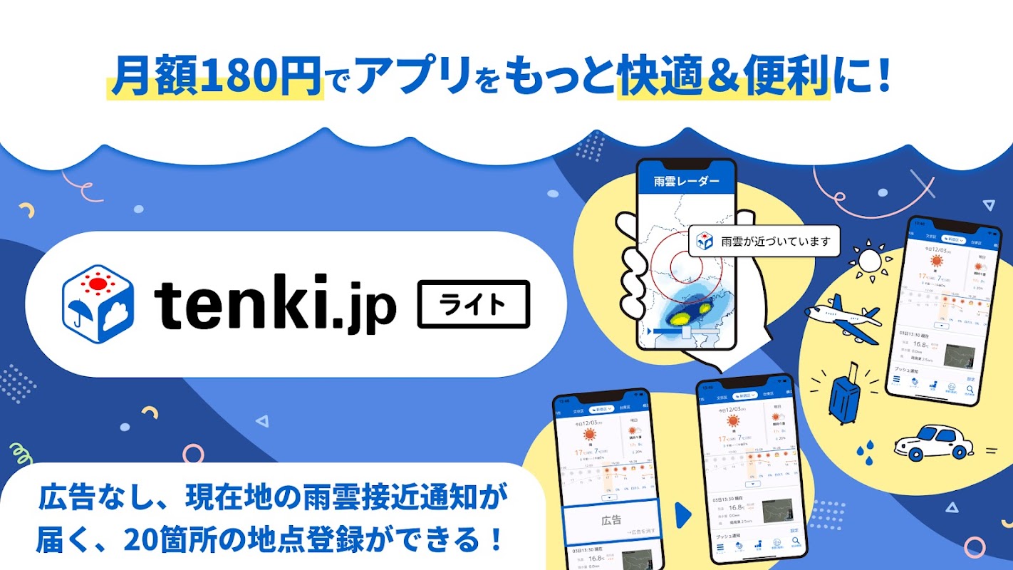 ऐप में "tenki.jp लाइट" मेनू से सदस्यताएँ ली जा सकती हैं।