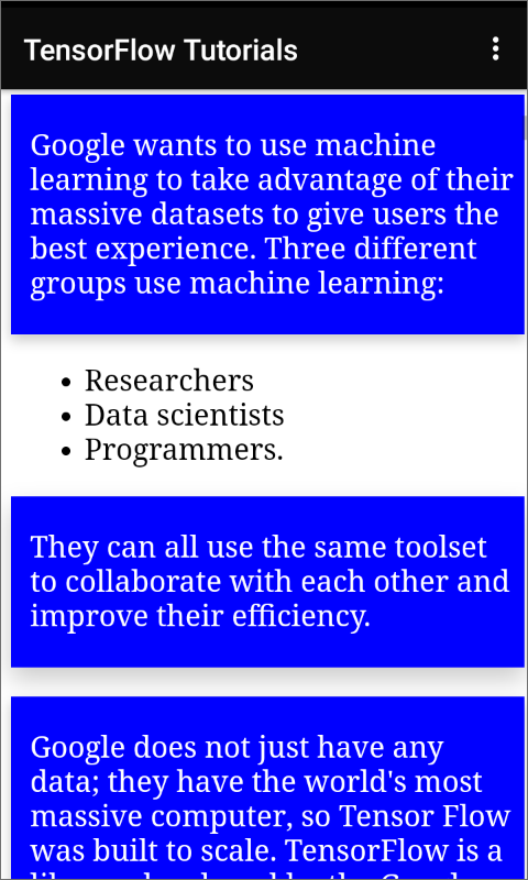 This FREE app will help you to understand Tensorflow Programming Language properly and teach you about how to Start Coding using Tensorflow. Here we are covering almost all Classes, Functions,