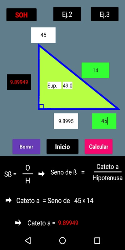 यह एप्लिकेशन आपको केवल दो चर को पूरा करके कर्ण, पैर ए या बी, कोण और समकोण त्रिभुज की सतह के मान की सटीक गणना करने की अनुमति देता है। ऐप पाइथागोरस प्रमेय या त्रिकोणमितीय कार्यों (एसओएच-सीएएच-टीओए) का उपयोग करके विस्तृत प्रक्रिया प्रदान करता है। पाइथागोरस प्रमेय के साथ, यदि अन्य दो भुजाओं की लंबाई ज्ञात हो तो कर्ण या किसी भी पैर की लंबाई निर्धारित करना संभव है। इसके अतिरिक्त, त्रिकोणमितीय फ़ंक्शन एक समकोण त्रिभुज के कोणों की गणना करने या ज्ञात कोणों से भुजाओं की लंबाई निकालने के लिए एक उपयोगी उपकरण प्रदान करते हैं। पाइथागोरस प्रमेय और त्रिकोणमितीय फ़ंक्शन दोनों ही समकोण त्रिभुजों से संबंधित समस्याओं को हल करने के लिए मौलिक हैं, और यह एप्लिकेशन इन गणितीय अवधारणाओं को समझना और लागू करना आसान बनाता है। चाहे आप पाइथागोरस प्रमेय या त्रिकोणमितीय कार्यों के साथ काम करना पसंद करते हों, यह ऐप आपको वांछित परिणाम प्राप्त करने के लिए चरण दर चरण मार्गदर्शन करेगा।