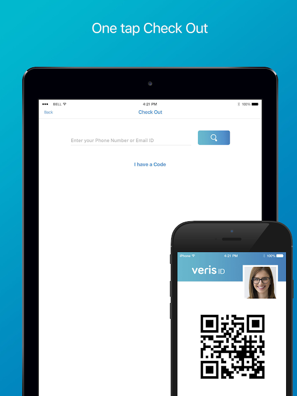 संगठन का दौरा करते समय, उपयोगकर्ता Veris टर्मिनल के साथ बातचीत करने के लिए Veris User App का उपयोग कर सकता है, यह