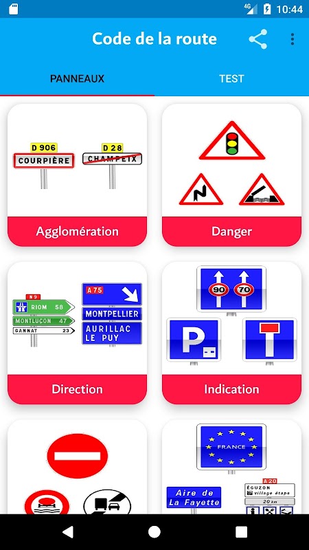 यह एप्लिकेशन 10 प्रश्नों के 12 सेट प्रदान करता है जो राजमार्ग कोड के नए सैद्धांतिक परीक्षण का अनुपालन करते हैं। यह परीक्षा की वास्तविक स्थितियों में पाठक को रखता है: प्रश्न ट्रैफ़िक संकेत की विभिन्न श्रेणियों के अनुसार वितरित किए जाते हैं। प्रत्येक प्रश्न एक विस्तृत सुधार के अधीन होता है, जो उम्मीदवार को दिन में तेज़ी से प्रगति करने और सफल होने की अनुमति देता है। परीक्षा का