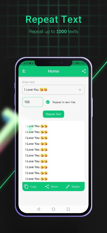 टेक्स्ट लूपर: दोहराएँ, स्टाइल करें, साझा करें! फ़ॉन्ट के साथ टेक्स्ट को सेकंडों में रूपांतरित करें!