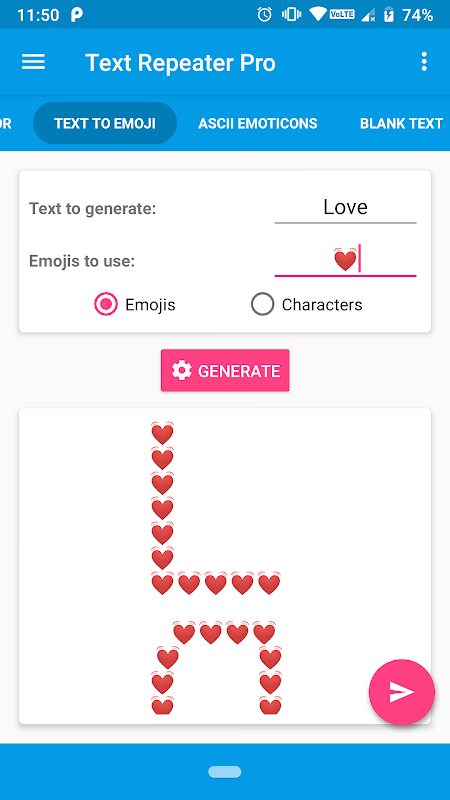 - रैंडम टेक्स्ट: रैंडम कैरेक्टर, इमोजीस, नंबर या उन सभी को उत्पन्न करें!