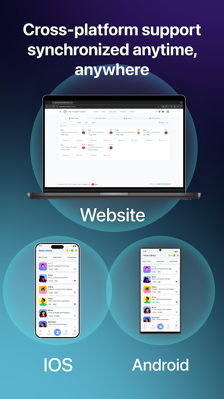 💻📱 डेस्कटॉप या मोबाइल: आपने अपने टेक्स्ट टू स्पीच - एआई वॉयस लाइब्रेरी में जो कुछ भी सहेजा है वह तुरंत सभी डिवाइसों में सिंक हो जाएगा, जिससे आप कहीं भी, कभी भी कुछ भी सुन सकते हैं।