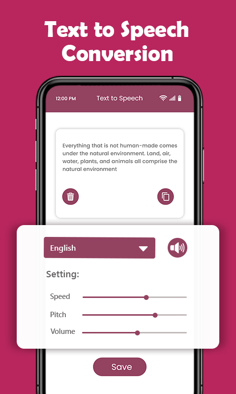 ✔ टीटीएस रीडर स्पीक टेक्स्ट को सेव करता है जिसे वॉयस रीडर वॉयस रीडिंग द्वारा टेक्स्ट में बदल देता है।