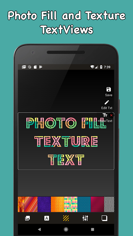 तस्वीरों, महान फ़ॉन्ट्स, सर्वोत्तम पृष्ठभूमि, कस्टम छाया और आपकी तस्वीर के शीर्ष पर लिखने पर स्टाइलिश टेक्स्ट जोड़ना कभी आसान नहीं रहा है। एक सरल टेक्स्टिफ़ टेक्स्ट एडिटर के साथ आप टेक्स्ट आर्ट शैलियों, पृष्ठभूमि, फोंट, बनावट, छाया विकल्प टेक्स्ट रोटेशन आकार बदलने के साथ जो कुछ भी कर रहे हैं, उस पर ध्यान केंद्रित करने देते हैं, जिसे आप अनुकूलित कर सकते हैं और निश्चित रूप से आप अपनी पृष्ठभूमि का उपयोग कर सकते हैं और साथ ही पाठ के लिए स्वयं बनावट,