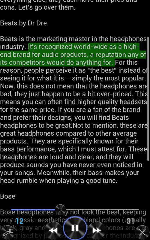 रीडर अनुप्रयोग किसी भी पाठ है कि आप अपने Android फोन पर (पाठ पर लंबे समय नल) को चिह्नित करने में सक्षम हैं पढ़ सकते हैं!