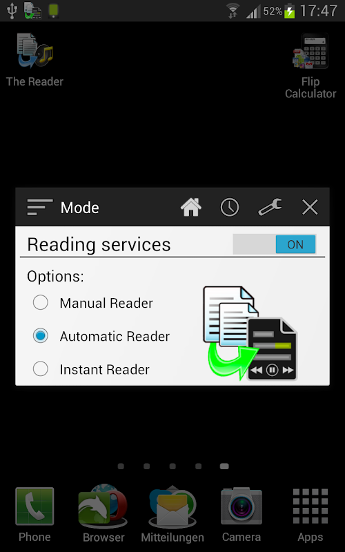रीडर App आपको पाठ पढ़ने के लिए मदद करता है।