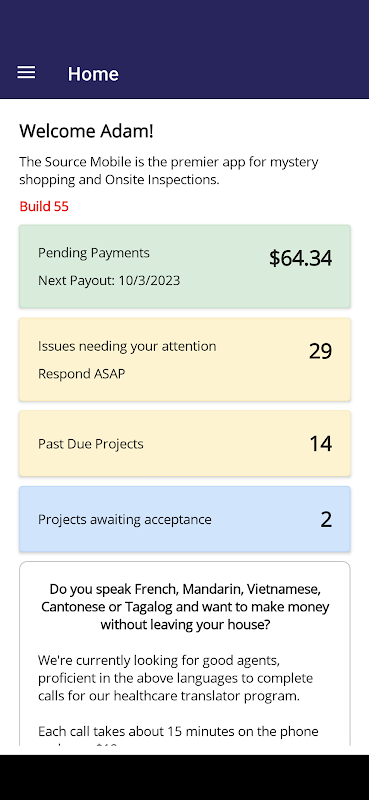 स्रोत ट्रेंडसोर्स, इंक. के लिए विशिष्ट फ़ील्ड एजेंट डेटाबेस प्रदाता है। स्रोत अपने समय पर कुछ अतिरिक्त पैसा कमाने के इच्छुक व्यक्तियों के लिए विविध प्रकार के अवसर प्रदान करता है, जिसमें रहस्यमय खरीदारी, ग्राहक अवरोधन, पेशेवर ऑनसाइट निरीक्षण, प्रतिस्पर्धी मूल्य निर्धारण ऑडिट शामिल हैं। और भी बहुत कुछ!