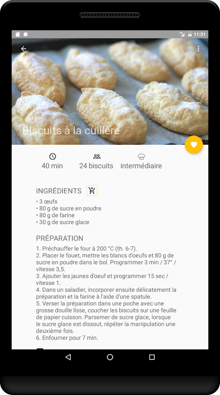 * अपने पसंदीदा व्यंजनों: अपने पसंदीदा व्यंजनों को बचाने और मुख्य मेनू से आसानी से उन्हें देखने। अपने पसंदीदा में कोई नुस्खा जोड़ने के लिए, एक नुस्खा की प्रोफ़ाइल में दिल को छूने।