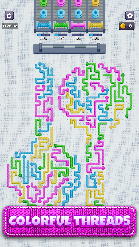 रंग-बिरंगे धागों को सरकाएं, बॉबिन का मिलान करें और आरामदेह रस्सी की पहेलियों को हल करें.
