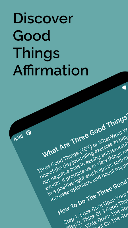 थ्री गुड थिंग्स (टीजीटी) या व्हाट-वेंट-वेल, घटनाओं को देखने और याद रखने में हमारे नकारात्मक पूर्वाग्रह को दूर करने में हमारी मदद करने के लिए दिन-प्रतिदिन का जर्नलिंग अभ्यास है। यह हमें सकारात्मक प्रकाश में चीजों को अधिक बार देखने के लिए प्रेरित करता है और हमें कृतज्ञता विकसित करने, आशावाद बढ़ाने और खुशी बढ़ाने में मदद करता है।