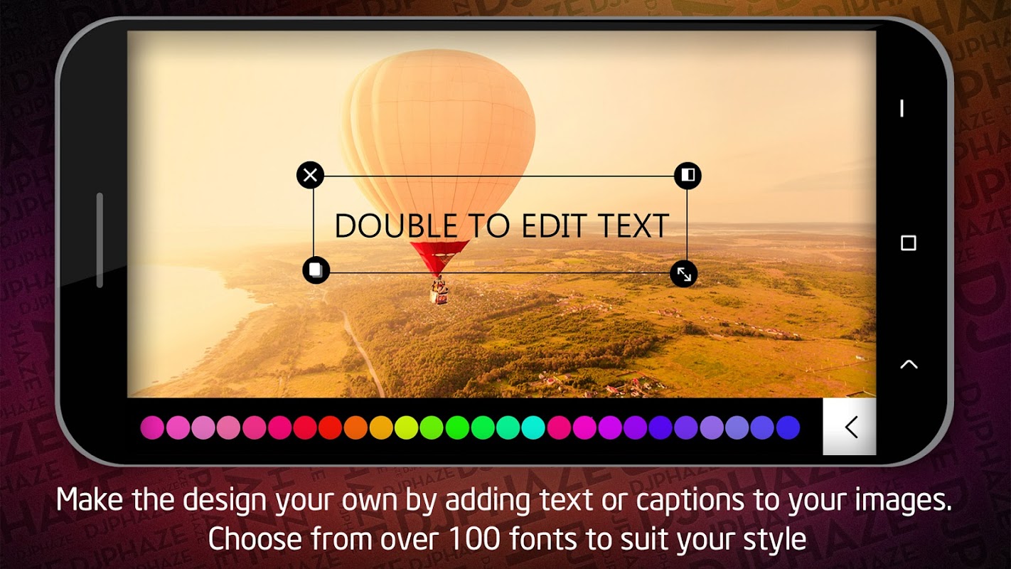• सेट फ़ॉन्ट रंग और शैली: हर अवसर के लिए विभिन्न प्रकार के मुफ्त फोंट में से चुनें। सही डिजाइन चित्र प्राप्त करने के लिए अपने शब्दों के फ़ॉन्ट आकार, रंग स्ट्रोक, छाया, स्थिति और रोटेशन ... को समायोजित करें।