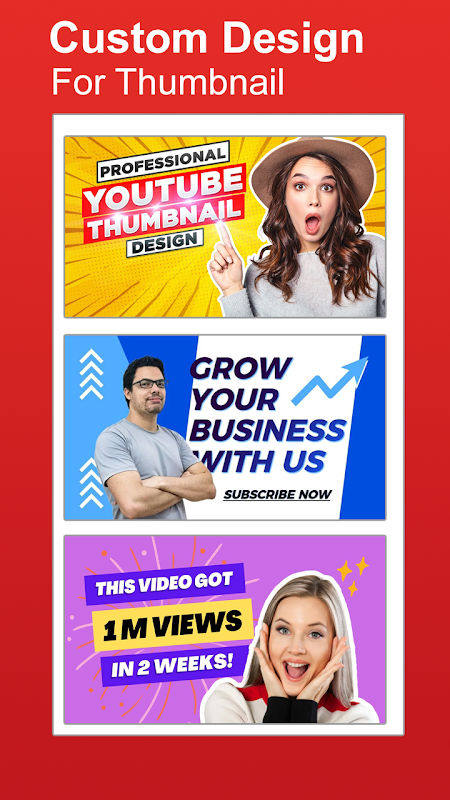 वीडियो थंबनेल के साथ, किसी पेशेवर एचडी थंबनेल डिजाइनर को नियुक्त करने की आवश्यकता नहीं है। आख़िरकार, व्यवसाय में समय और पैसा एक खजाना हैं। शानदार थंबनेल, यूट्यूब शॉर्ट के लिए कवर फोटो मेकर और पेशेवर दिखने वाले बैनर बनाना शुरू करने के लिए मुफ्त में वीडियो थंबनेल क्रिएटर ऐप पर जाएं।