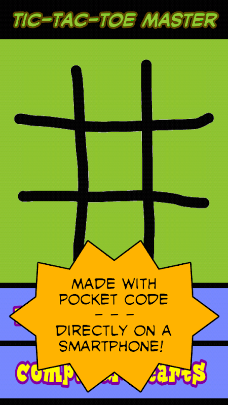 Tic-Tac-Toe Master is one of many apps that was created directly and entirely on a phone using Pocket Code. No PC is needed. See https://pocketcode.org/ for other programs made with Pocket Code. All of them are free software!