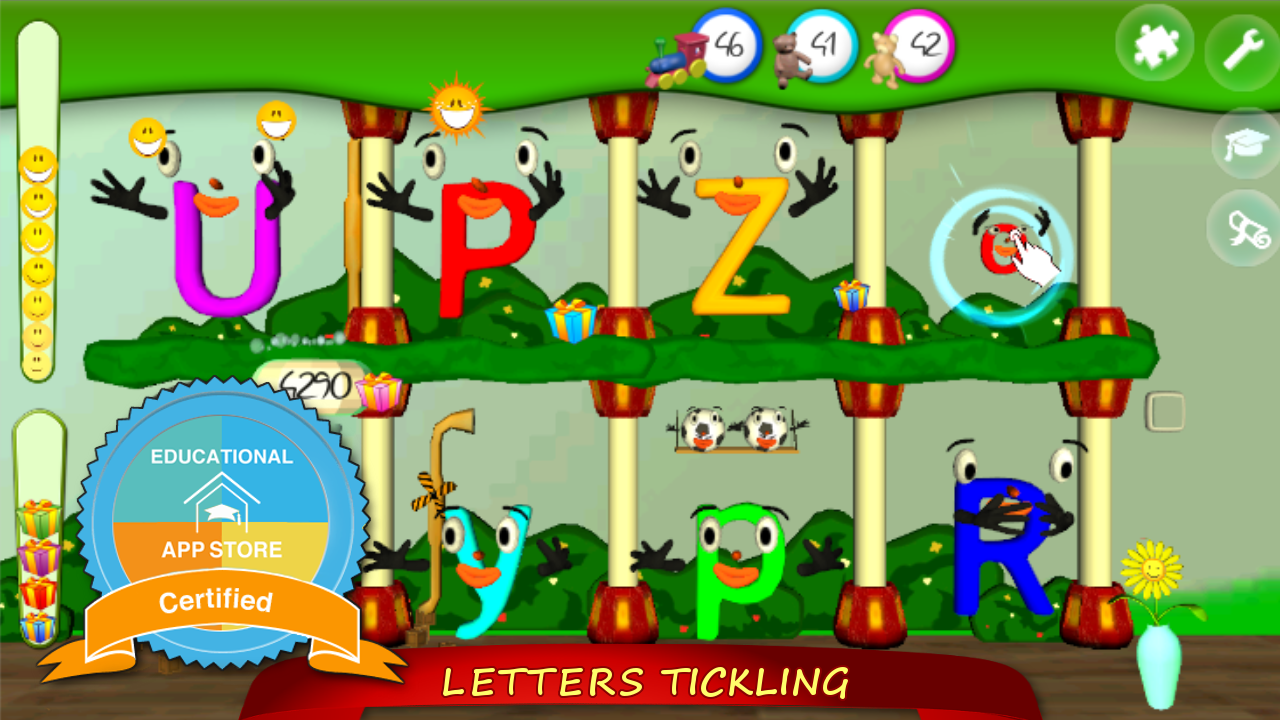 Certified by "EDUCATIONAL APP STORE". Tickle Letters is a highly effective alphabet learning game for the youngest children. It's all about fun and learning at the same time! With help of funny ticklish letters, soap bubbles, puzzles and many other surprises your child learns what letters look and sound like.