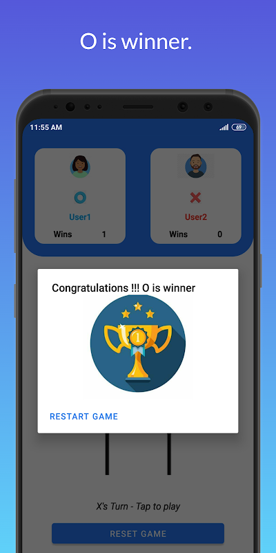 TICTACTOE_GAMING एक गेमिंग ऐप है जिसमें दो खिलाड़ी गेम खेल सकते हैं