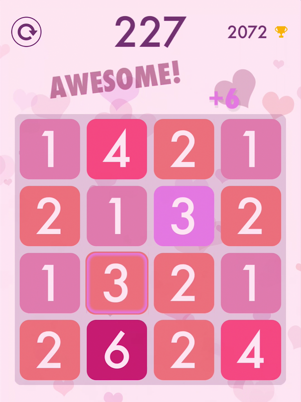 Tap & fuse equal adjacent tiles into one tile with larger value! 7 themes with rich visual effects. Can you make 10?!