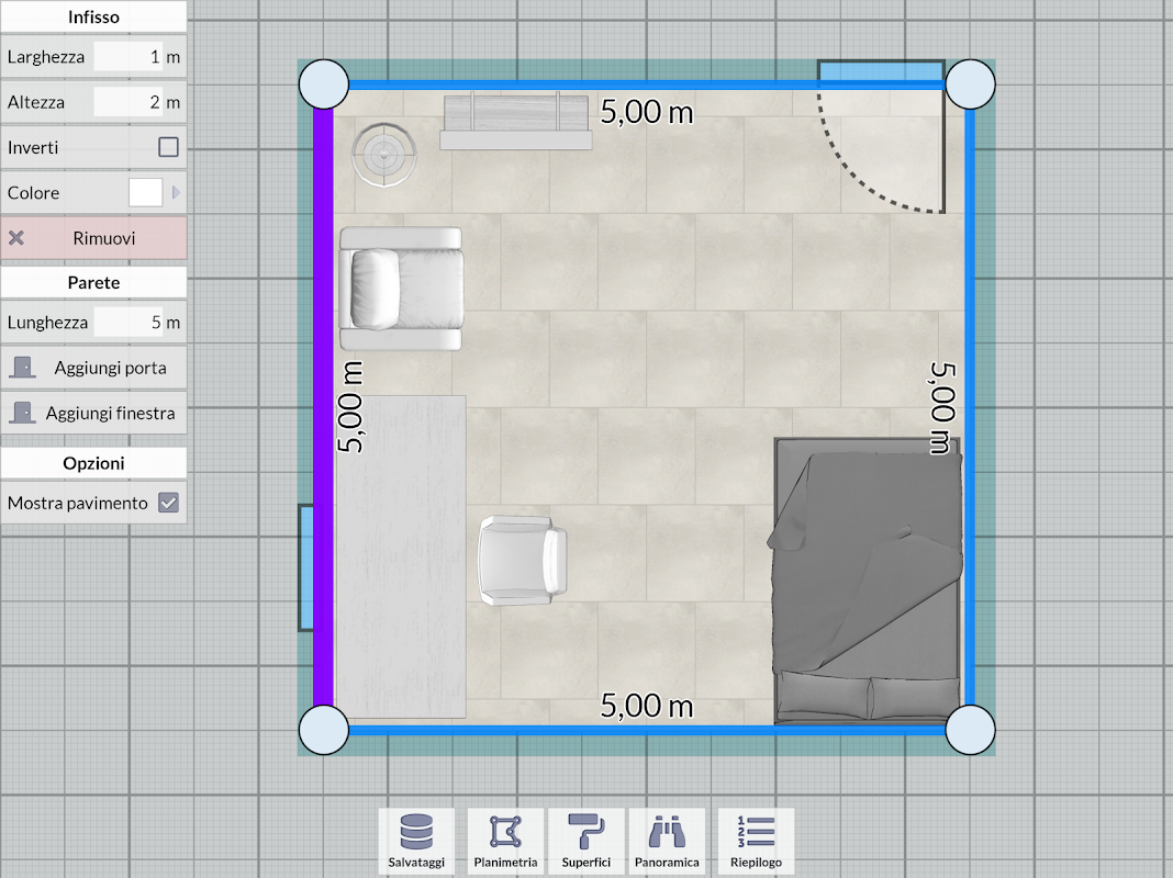 Questa app ti permette di riprodurre rapidamente le dimensioni del tuo ambiente e di decorarlo a tuo piacimento.