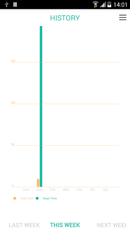 6) show time charts of every application of the limit for the past three weeks on a weekly basis