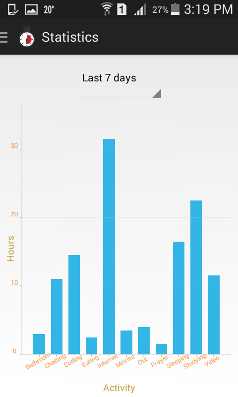 At the end of the day, week or month you can view your statistics to know how you spent your time and better organize it.