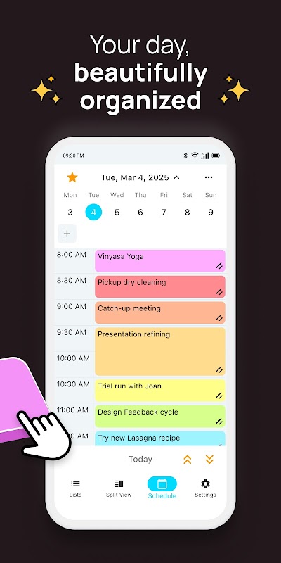 • स्प्लिट व्यू: अपनी टास्क लिस्ट और शेड्यूल को साथ-साथ देखें—उनके बीच ड्रैग करें