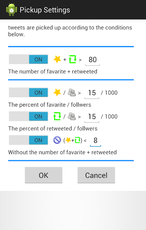 This application pick up your twitter timeline tweets according to the conditions.