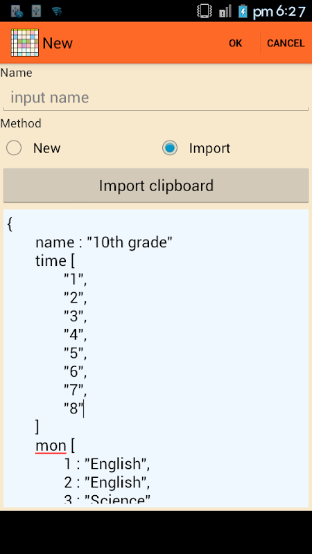 timetable share and import ( using clipboard )