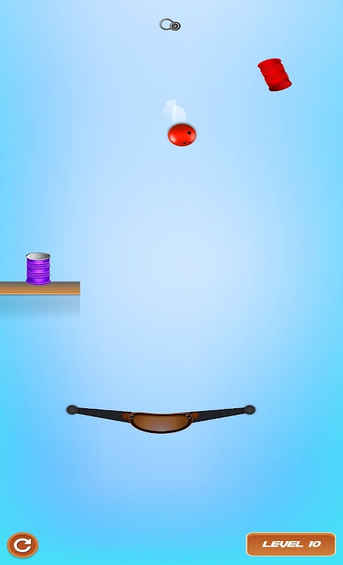 खेल जीतने के लिए गेंद टिन से टकराती है