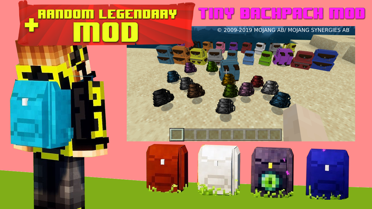 Tiny backpack mod includes a huge number of backpacks of various types and sizes. Everyone will find their favorite size and color! But in order to create a backpack you must take a chest and eight pieces of leather. And to change the color you need to take the bag and add the color you want to receive! A tiny backpack mod adds not only beauty, but also very useful in them you can move around the world useful and not very things. Create the most beautiful and unique bag for carrying veshey. We have prepared a random Legendary reward for everyone!