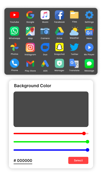 - कलर पिकर का उपयोग करके ऐप नाम और पृष्ठभूमि के लिए किसी भी रंग संयोजन के साथ विजेट को कस्टमाइज़ करें।