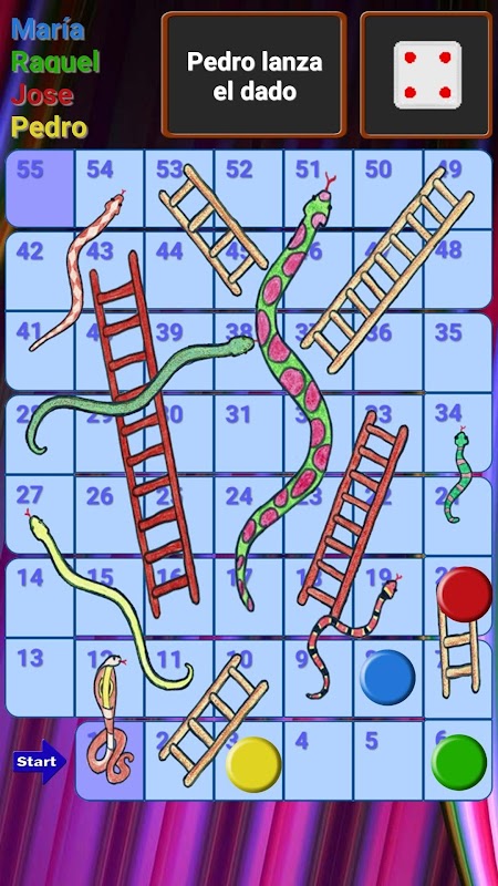 लोकप्रिय बोर्ड गेम, सांप और सीढ़ी का छोटा संस्करण, वर्गों की कम संख्या के साथ, और जो 1 से 4 खिलाड़ियों की अनुमति देता है