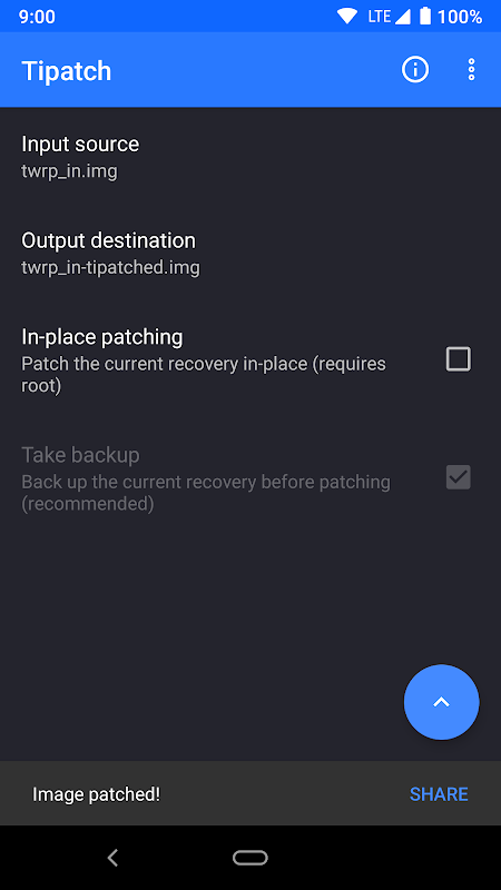 टिपैच मदद करने के लिए यहां है। बस इसे एक नया उत्पाद बनाने के लिए एक TWRP छवि फ़ाइल पर चलाएं जो बैकअप पूर्ण करने के लिए सभी आंतरिक संग्रहण का बैक अप लेता है।