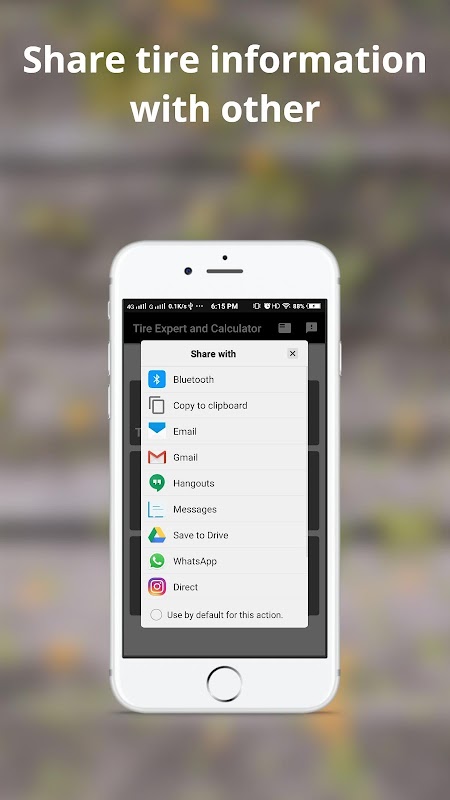 टायर कैलकुलेटर का उपयोग करके, कोई भी देख सकता है और समझ सकता है कि टायर चौड़ाई, त्रिज्या, व्यास, परिधि और वाहन में वास्तविक गति स्पष्ट है और टायर और व्हील आकार को बदलने के बाद बहुत सरल और स्पष्ट ग्राफिकल दृश्य में क्या अंतर है।