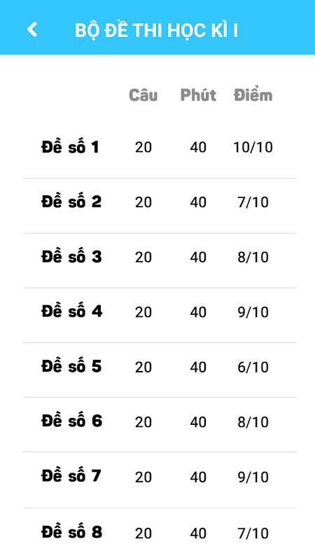 40 ग्रेड 12 गणित सेमेस्टर परीक्षा एप्लिकेशन में एक सरल, उपयोग में आसान इंटरफ़ेस है। छात्र इसे स्वयं कर सकते हैं, अपने परीक्षा समय, प्राप्त अंक का स्वयं मूल्यांकन कर सकते हैं, और उच्च परिणाम प्राप्त करने के लिए इसे बार-बार कर सकते हैं। सर्वोत्तम।