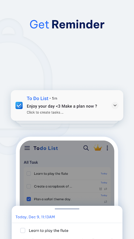 करने की सूची के साथ, अब आपको सब कुछ याद रखने की आवश्यकता नहीं है। आपको बस इतना करना है कि कार्य दर्ज करें और अनुस्मारक सेट करें। जब कोई काम पूरा होने वाला हो तो हम आपको याद दिलाएंगे और पक्का करेंगे कि आपसे कोई काम न छूटे