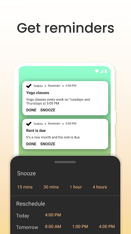 स्नूज़ और कस्टम रिंगटोन के साथ आप अपने कार्यों के लिए आसानी से एक या बार-बार अलार्म जोड़ सकते हैं, ताकि आप उनमें से किसी को भी याद न करें।