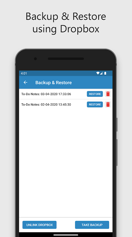 • ड्रॉपबॉक्स के माध्यम से नोट्स का बैकअप और रिस्टोर करें।